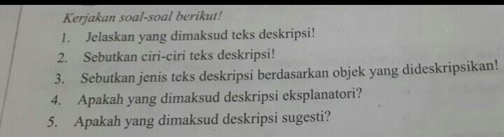 9) siswa diminta membaca contoh teks deskripsi dan menganalisis struktur teks. Berbeda dengan eksplanatori teks deskripsi sugesti dapat juga bersifat imajinatif atau subjektif yang muncul dari hasil penilaian penulis. Teks deskripsi sugestif · rumah kami terletak di pinggir ladang milik ayah dan ibu. Teks deskripsi sugestif merupakan teks deskripsi yang dibuat dengan cara menggambarkan apa yang ditafsirkan oleh penulis. Contoh teks deskripsi tentang hewan kelinci