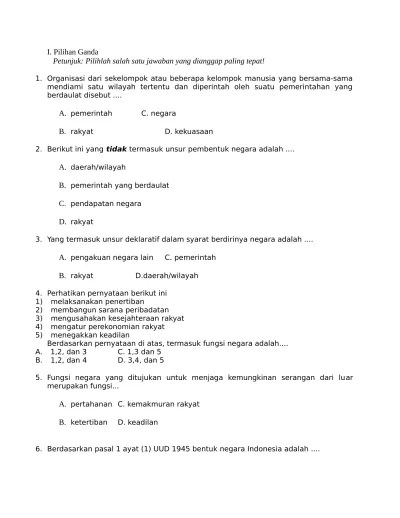 Sumber latihan soal pas pkn kelas 7 smp/mts semester 1 ini mengacu pada materi. Kali ini kami akan membagikan soal pilihan ganda pkn kelas 7 semester 1 kurikulum 2013 sebagai persiapan ulangan harian, uts, uas, . Latihan soal uas pkn kelas 7 semester 1 dan kunci jawaban kurikulum 2013. Salah satu penyebab seringnya kecelakaan lalu lintas di jalan raya disebabkan. Norma kesopanan bersumber dari … jawaban: